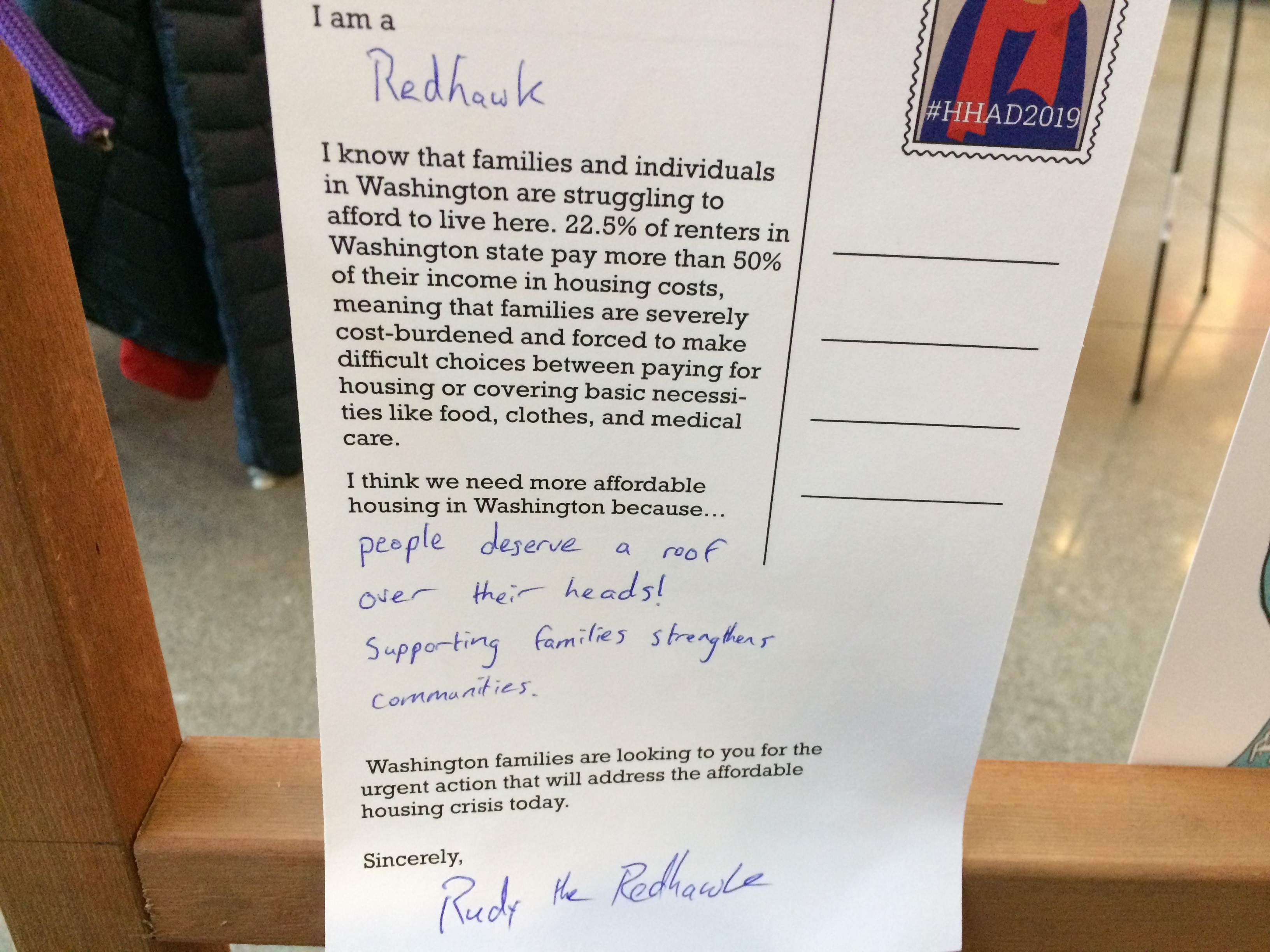 HHAD tabling event Rudy postcard